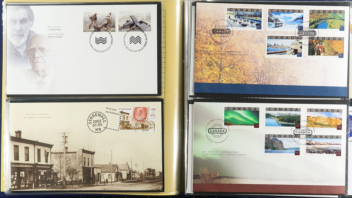 First Day Covers. Collection of roughly 525 Canada first day covers, 1973-2006, neatly organized in 7 cover albums. We note singles, sets, coils, blocks and plate blocks, souvenir sheets, and high denomination frankings. A clean lot for collectors and dealers alike. Estimate =