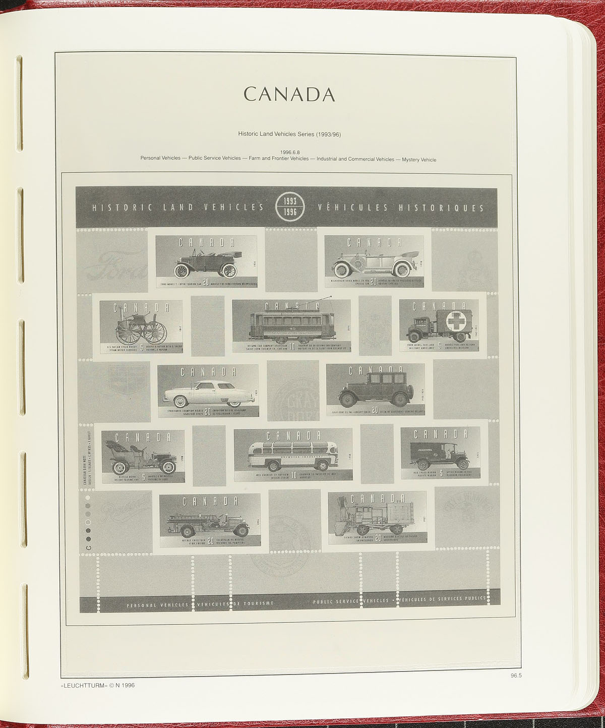 Two lovely appearing brand new Canada Lighthouse albums with slipcases, all with clean hingeless album pages. The first album covers years 1988-1999, with the second covering years 2000-2004, along with complete pages for BNA stamps. The lot also includes Lighthouse hingeless pages from years 1972-1986 (with pencil notations on pages). Original retail would be several hundreds of dollars. Estimate =