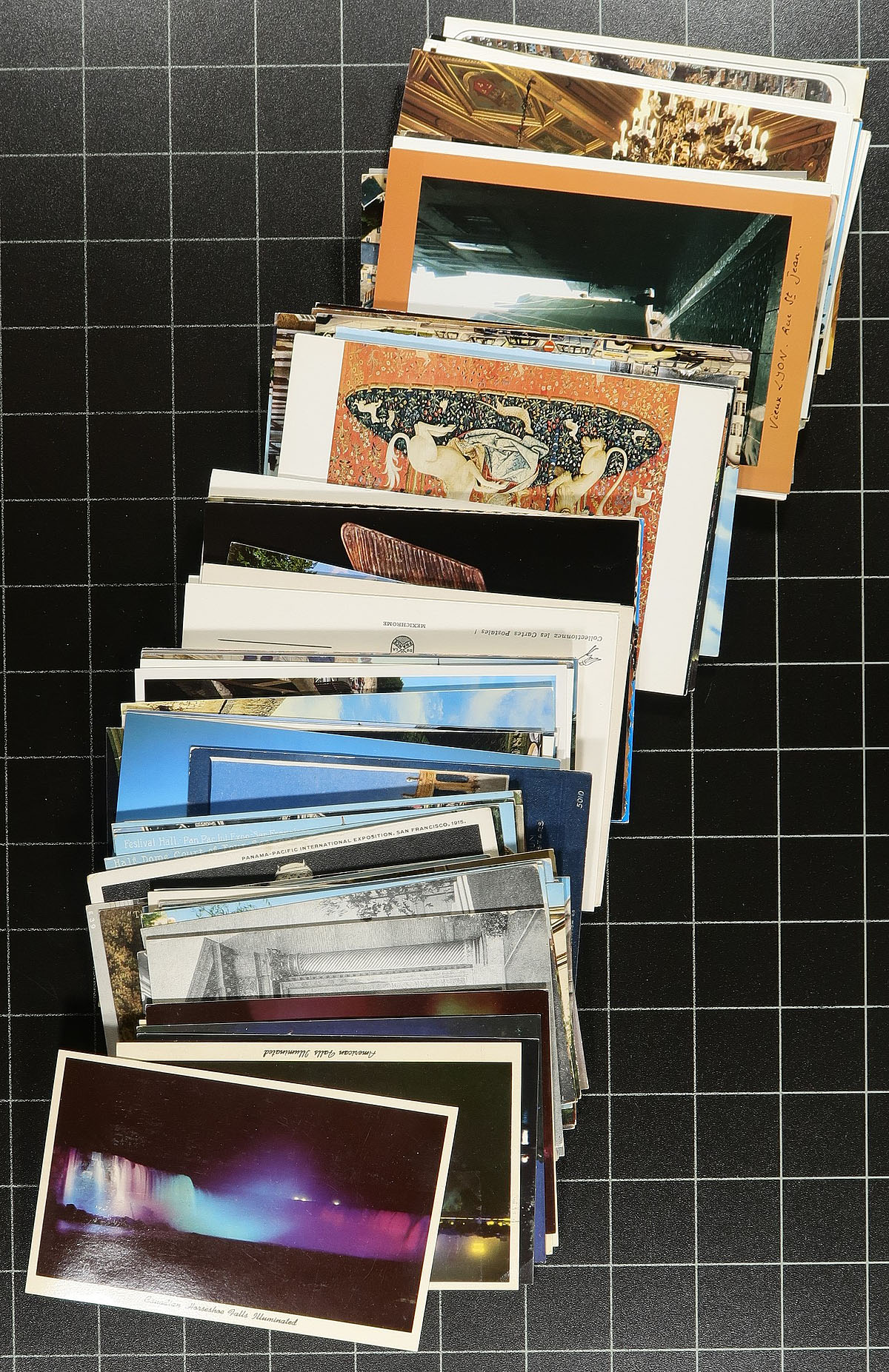 Accumulation of roughly 1,250 worldwide postcards stuffing a bankers box. The lot consists of chrome postcards, with a few other types possible, covering regions of Canada, Europe, Asia, and other areas, with a wide range of topics present including nature scenes, buildings, ships, buildings, famous city locations, and much more. Generally clean overall. Estimate =