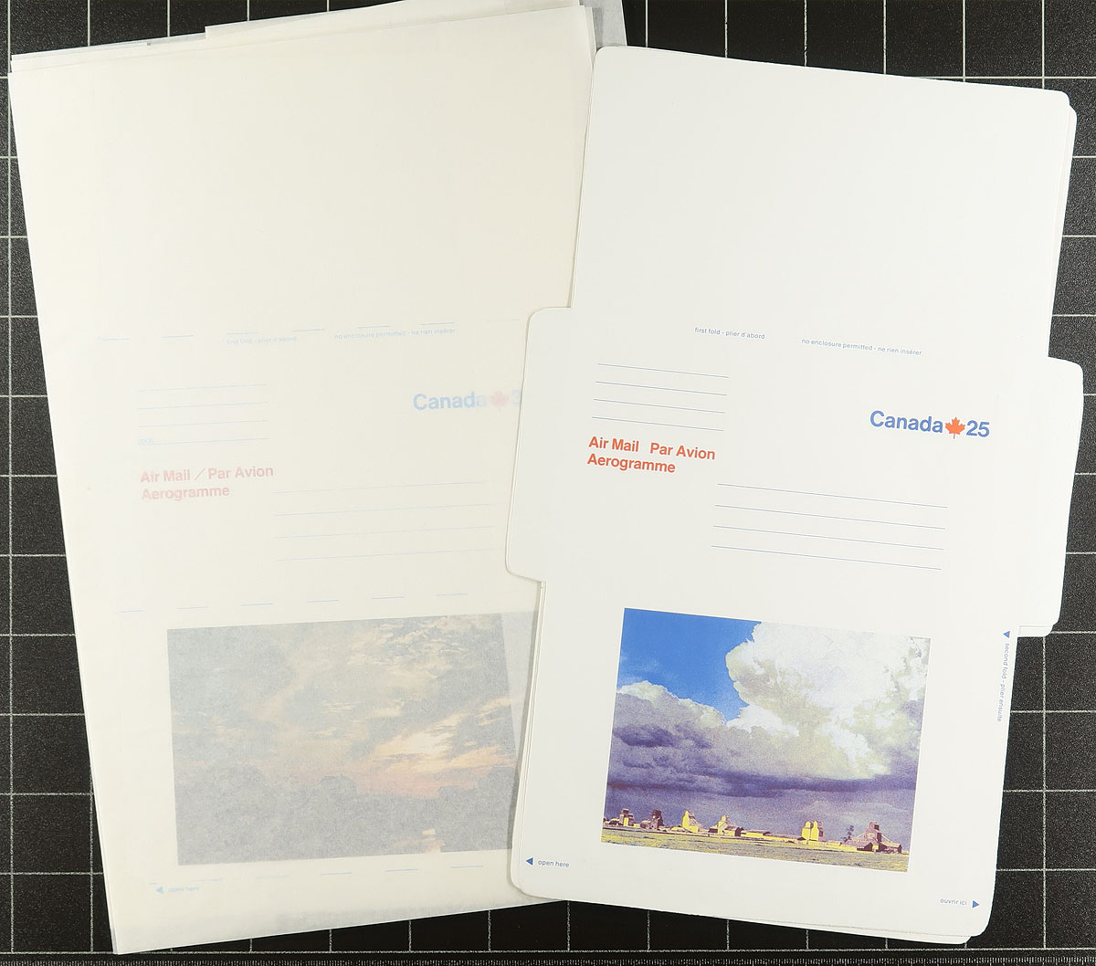 Postal Stationery. Accumulation of several hundred mint and used Canada postal stationery material in a bankers box. We note a wide variety of material (mostly unused), from the Victorian era up to the 2000's, noting postage paid cards, postal cards, wrappers, reply cards, letter cards, UPU cards, a few Newfoundland pieces, air letters, and much more, noting Star Trek postage paid cards, Wildlife envelopes, etc. Duplication heavy for some issues, with many items cataloguing in the $2 to $5 and up range. A nice lot for the specialist. Estimate =
