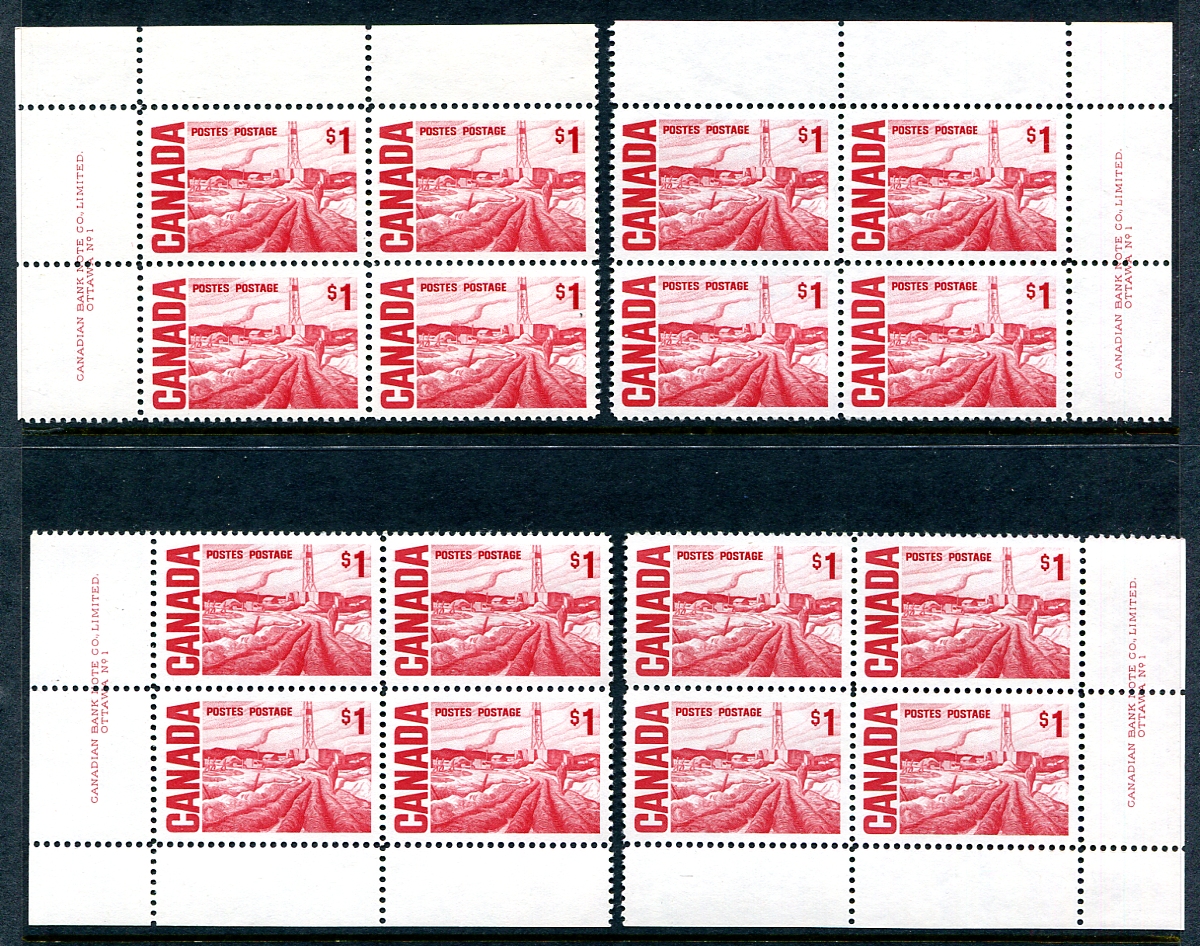 Complete set of mint Never Hinged matched set of Plate #1 plate blocks (all four corners for each value) of the 1967 issued Mid/High value Centennial series with DEX gum. A tidy complete run. Unchecked for better fluorescence. 2024 Unitrade =