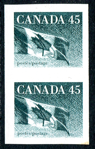 VF mint Never Hinged imperforate pair of the 1995 issue 45c blue green Flag coil on HB paper. An always popular (and quite affordable) QEII era variety. 2024 Unitrade =