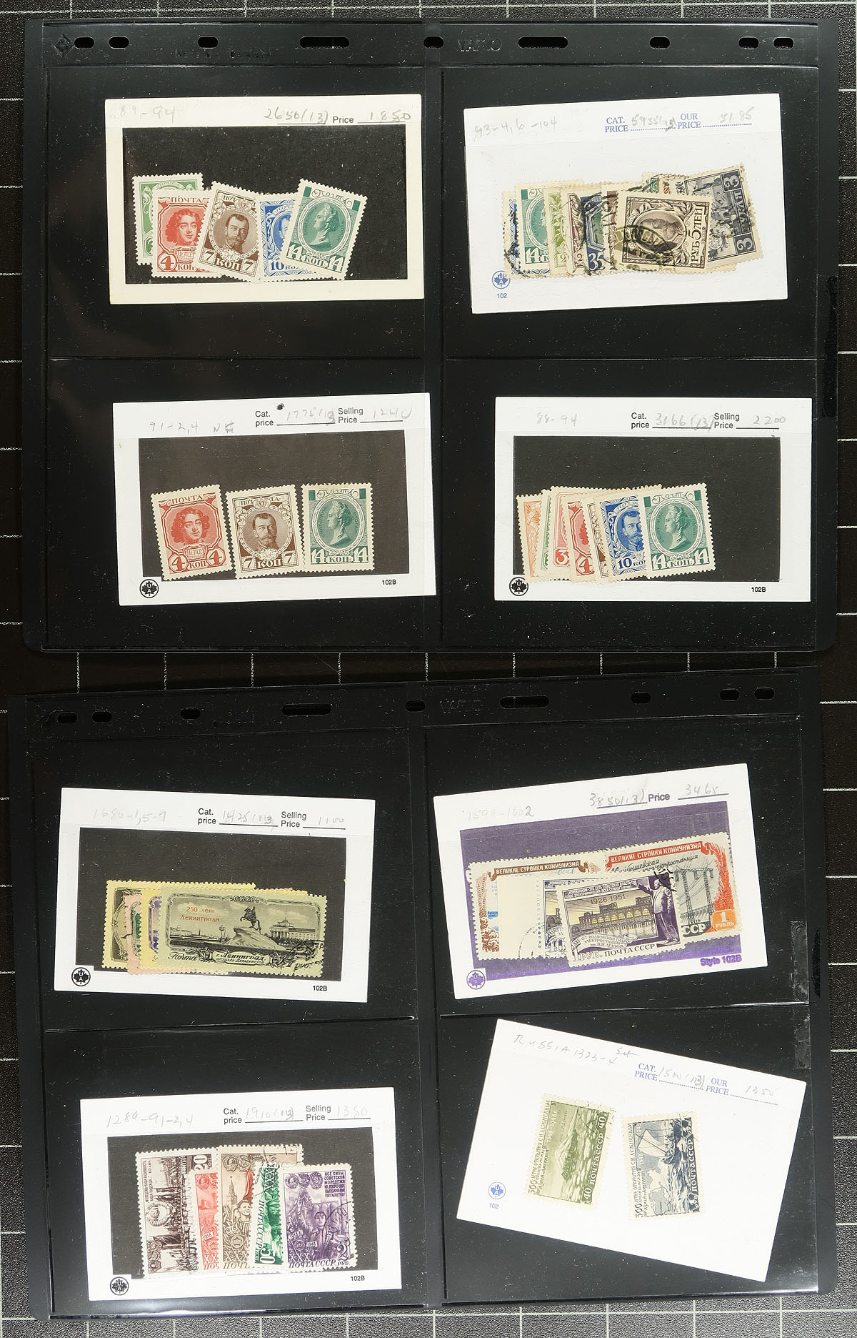 Interesting and eclectic assembly of "102" cards, arranged on pages including mint, used, sets, singles from the early 1900's to 1980's. Some minor duplication, but a very useful lot for either the collector or dealer looking to bolster their holdings. Owner's catalogue value (unknown year is over US$1500.00! In need of a bit of organization, but carefully examine the pictures to appreciate the quality of the holding. Estimate =