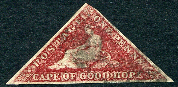 F/VF used example of the 1855-1858 Perkins Bacon & Co. printing of the 1p dull red on white paper "Hope Seated" imperforate. Just cut in at top right, otherwise full and clear margins all-around. 2025 Scott US$425.00 =
