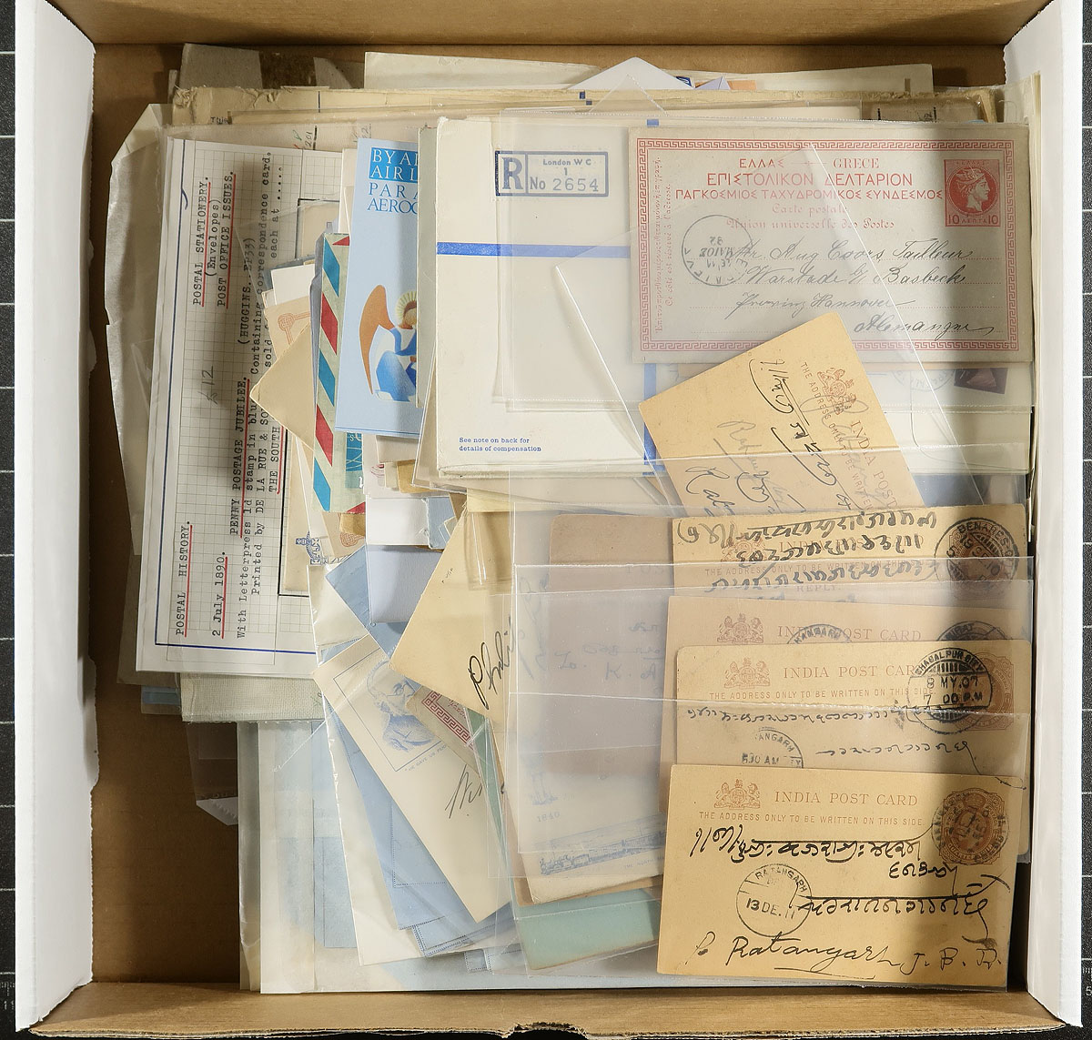 Group of Roughly 175 mint and used worldwide postal stationery items, generally ranging from the 1890's to the 1970's. We estimate an even mix of mint and used material, with the bulk of the mint being air letter from Great Britain and the Channel Islands, along with better used representation from India, Great Britain, Europe, along with a few pieces from Hawaii, and more, including postal cards, air letter, registered envelopes, UPU cards, and various sized envelopes. A few items have been sleeved and retail in the $2 to $5 and up range, leaving potential finds to the postal stationery specialist. Estimate =