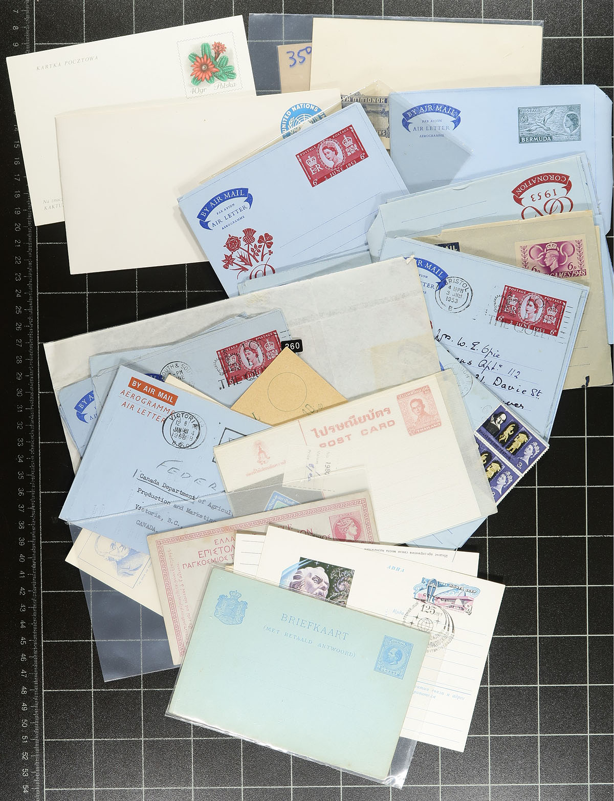 Group of Roughly 175 mint and used worldwide postal stationery items, generally ranging from the 1890's to the 1970's. We estimate an even mix of mint and used material, with the bulk of the mint being air letter from Great Britain and the Channel Islands, along with better used representation from India, Great Britain, Europe, along with a few pieces from Hawaii, and more, including postal cards, air letter, registered envelopes, UPU cards, and various sized envelopes. A few items have been sleeved and retail in the $2 to $5 and up range, leaving potential finds to the postal stationery specialist. Estimate =