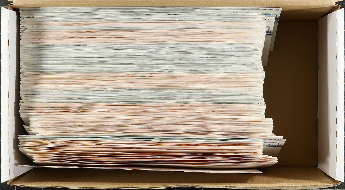 Manitoba Postal History / Postal Stationery. Group of roughly 230 postal stationery covers with Manitoba town postmarks, from years 1985-1986, paying first class domestic rates (including a few uprated covers). We note a variety of postmarks including cds, duplex, slogan, POCON types, Klussendorf, representing roughly 75 different towns including Grand Rapids, Pilot Mound, Moosehorn, Clearwater, Strathclair, Seven Sisters Falls, and more. Duplication up to 3 for a few towns, overall fine to very fine. Estimate =