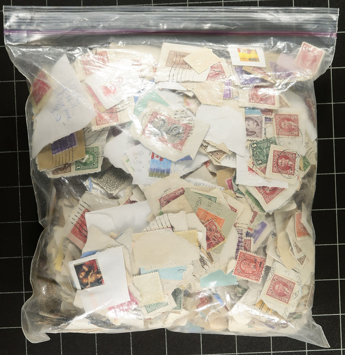 Large mystery bin of used Canada, containing thousands and thousands of used stamps in a variety of formats, on and off paper, in boxes, bags, tins, 102 cards, from parcels, etc. The majority of material appears to be from the 1900's to modern "P" values, but note some Victorian stamps, modern souvenir sheets, and more. A nice lot for the postmark hunter as we saw town cancels, RPOs, and probably much more to be hunted down. A nice project for the used collector. Estimate =