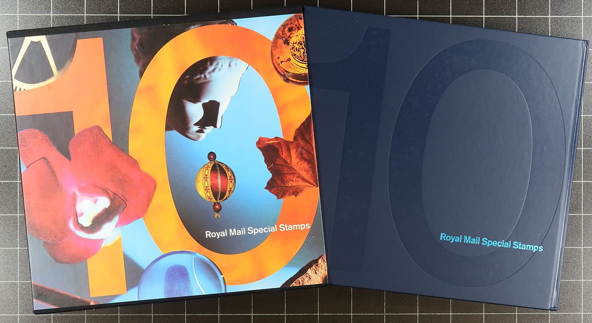 Group of 10 "Royal Mail Special Stamps" hard cover stamp year albums, 1986-1994 (Vol. 3-11). Concise catalogue value for the group totals £156.00, and we estimate the lot contains £100.00 of face value postage. The lot also includes "Britain in Miniature" album. Clean and ideal for all collectors. Estimate =