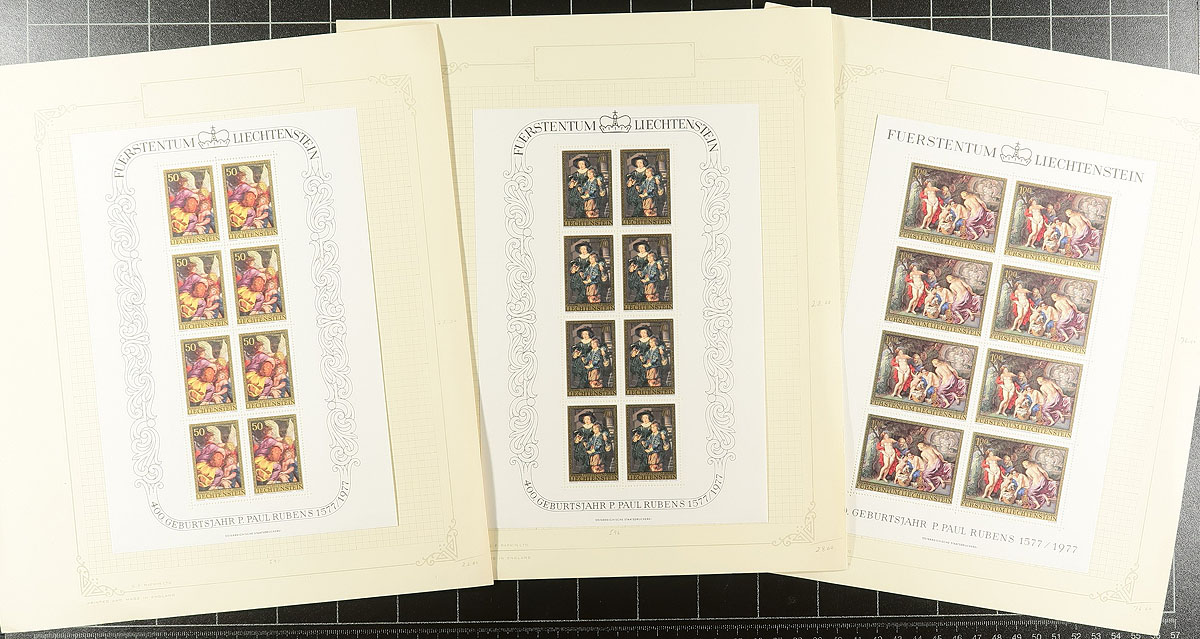 Collection / Accumulation of primarily never hinged Liechtenstein sheets, 1938-2000, with roughly 120 sheets or souvenir sheets, in several manila or Vario-style stock pages. The group has better representation from the 1960's to the 1980's, with some sheets cataloguing $5 to $30 and up each, including Scott #159 (lh, c.v. $90), leaving finds to the dedicated collector. Owner's Scott 2020 catalogue value for the collection totals $1,704. Duplication is up to 2-3 for some sheets. A nice grouping not often offered in this quantity, overall fine to very fine. 2024 Scott US$1,704.00 =