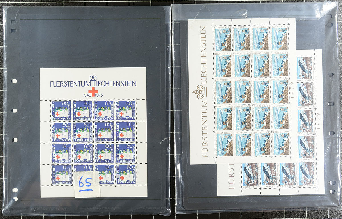 Collection / Accumulation of primarily never hinged Liechtenstein sheets, 1938-2000, with roughly 120 sheets or souvenir sheets, in several manila or Vario-style stock pages. The group has better representation from the 1960's to the 1980's, with some sheets cataloguing $5 to $30 and up each, including Scott #159 (lh, c.v. $90), leaving finds to the dedicated collector. Owner's Scott 2020 catalogue value for the collection totals $1,704. Duplication is up to 2-3 for some sheets. A nice grouping not often offered in this quantity, overall fine to very fine. 2024 Scott US$1,704.00 =