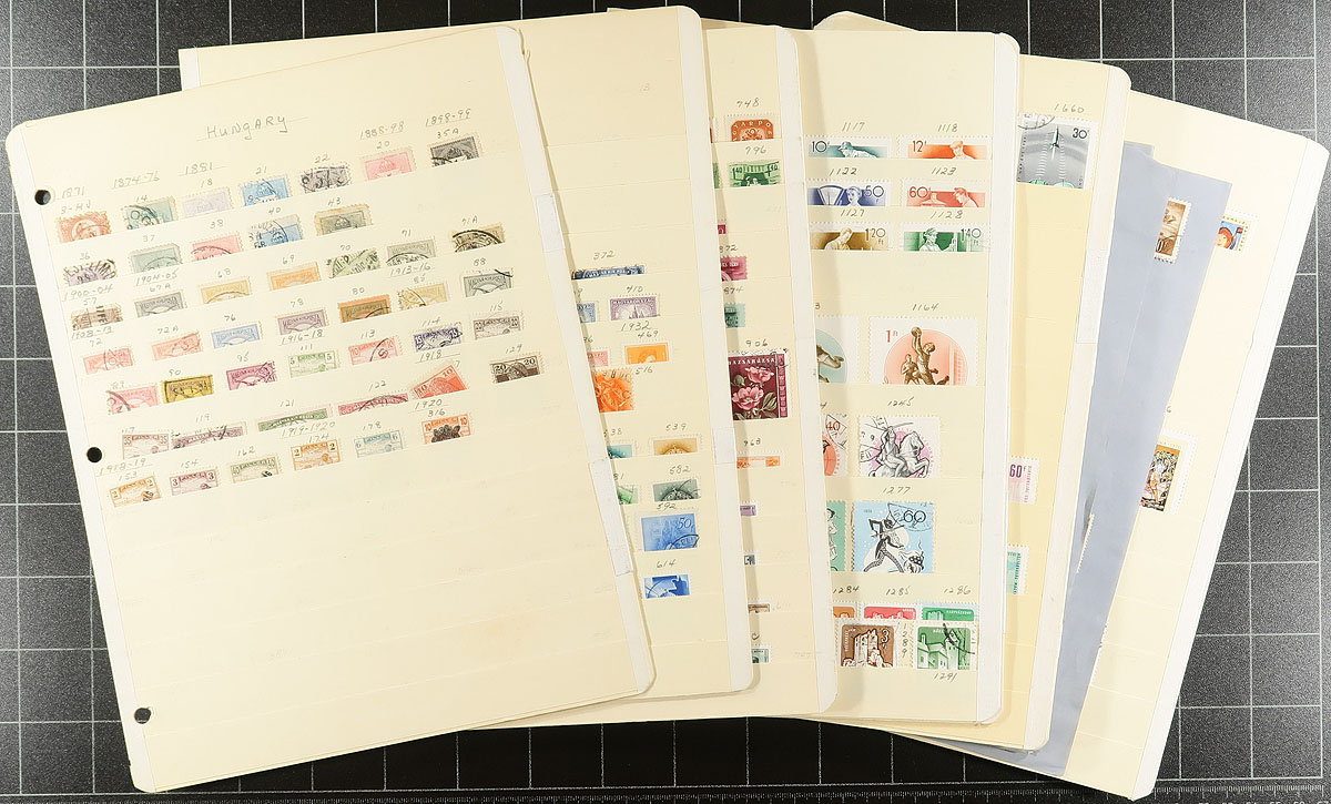 Accumulation of a few thousand, primarily used worldwide stamps in a bankers box. The lot consists of A to Z countries on a few hundred album or stock pages, with many organized by a file folder. We note better representation from Egypt, Syria, Burma, Portugal, Monaco, along with Europe and British Commonwealth countries, with material generally ranging from the 1880's to the 1970's. A spot check indicated some stamps and partial sets cataloguing in the $5 to $10 range. Postmark interest includes squared circles, cds and other postmark types. A nice lot with possible finds for the worldwide collector. Estimate =