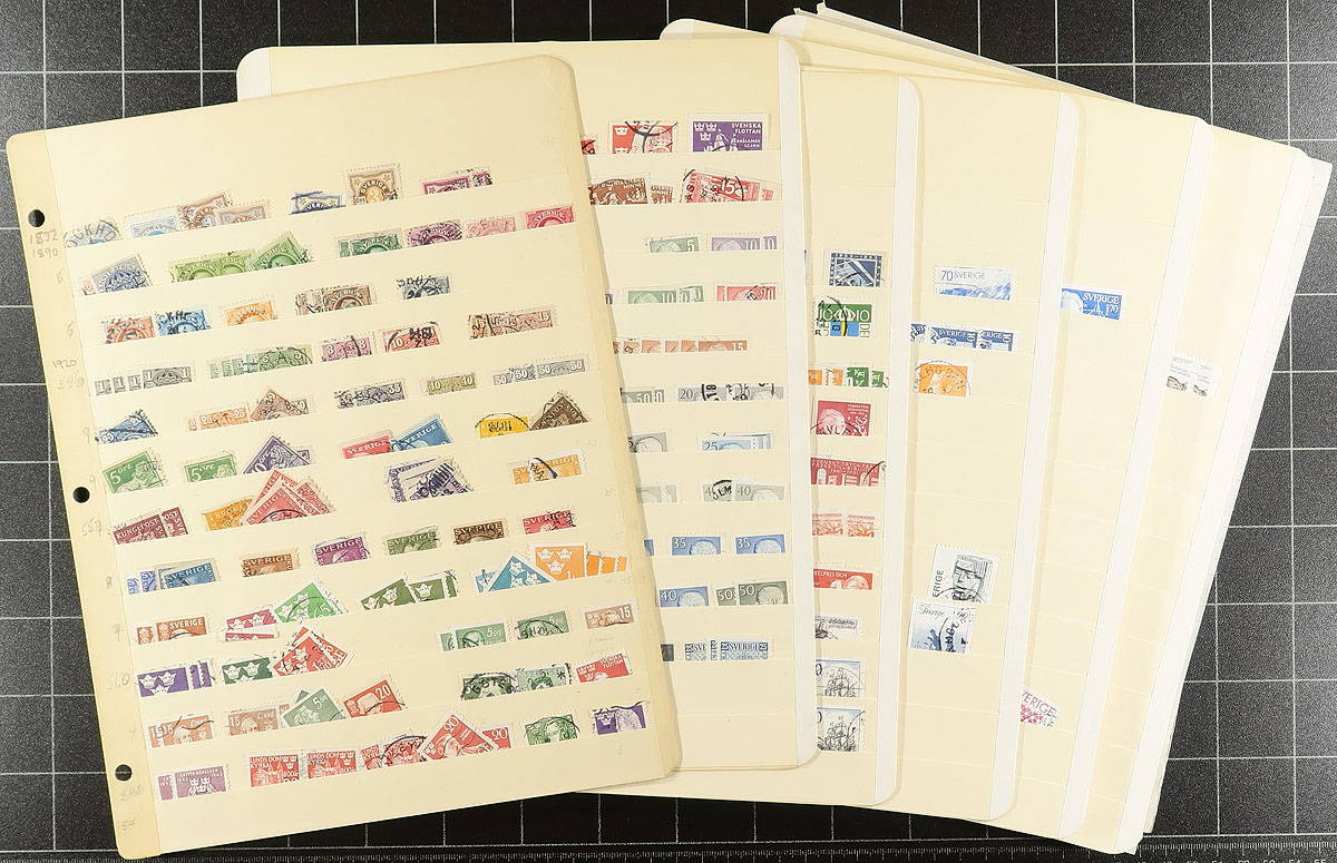 Accumulation of a few thousand, primarily used worldwide stamps in a bankers box. The lot consists of A to Z countries on a few hundred album or stock pages, with many organized by a file folder. We note better representation from Egypt, Syria, Burma, Portugal, Monaco, along with Europe and British Commonwealth countries, with material generally ranging from the 1880's to the 1970's. A spot check indicated some stamps and partial sets cataloguing in the $5 to $10 range. Postmark interest includes squared circles, cds and other postmark types. A nice lot with possible finds for the worldwide collector. Estimate =