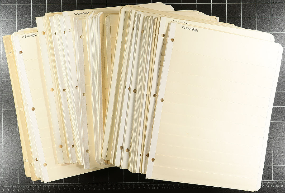 Manila Stocksheets. Group of roughly 125 gently used manila stock pages. Still useful, gently used and well worth our low estimate of less than $1 for each page. Estimate =