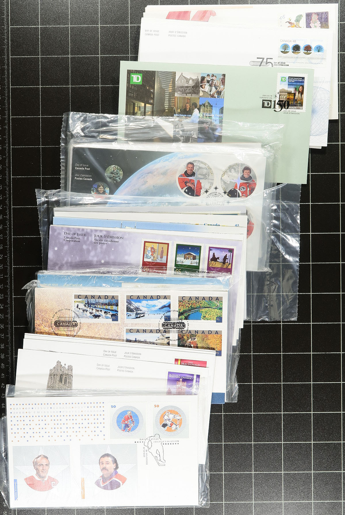 First Day Covers. Group of roughly 350 Canada first day covers, 1995-2010, with singles, sets, souvenir sheets, and plate block frankings. A nice clean group with several colorful cachets. Duplication up to 3 for a few issues. Estimate =