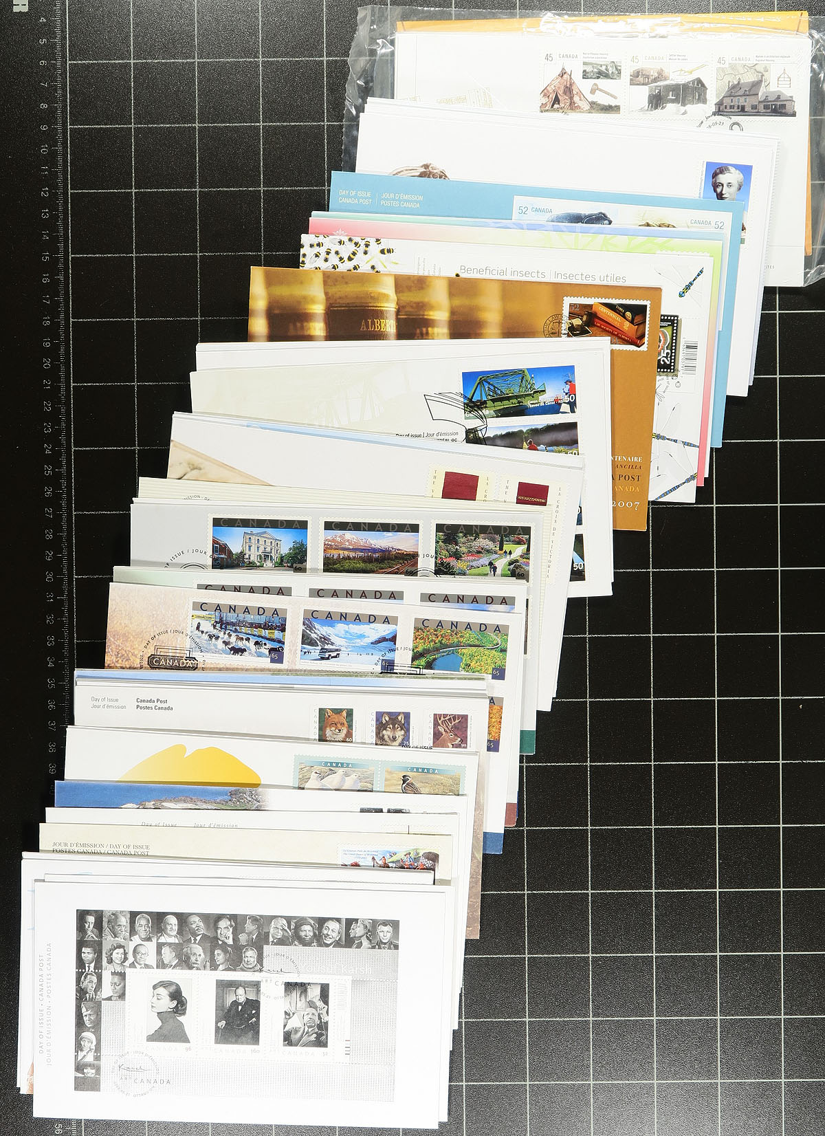 First Day Covers. Group of roughly 350 Canada first day covers, 1995-2010, with singles, sets, souvenir sheets, and plate block frankings. A nice clean group with several colorful cachets. Duplication up to 3 for a few issues. Estimate =
