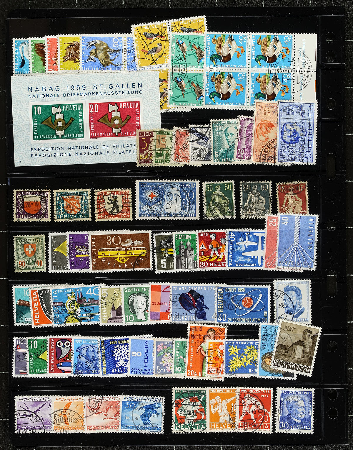 Collection of primarily used Switzerland, 1862-1970, containing roughly 700 stamps, generally well organized on album or in stock pages. The collection contains a good range of values including back of the book issues noting Scott #s 46-47, 54, 56, 59 (c.v. $77.50), 181-185, 206 ($93 total), J1-J9 ($104 total), along with some singles, sets, and partial sets cataloguing $10 to $25 and up each. Duplication up to 2 for a few issues. A clean lot for Switzerland and worldwide collectors. Estimate =