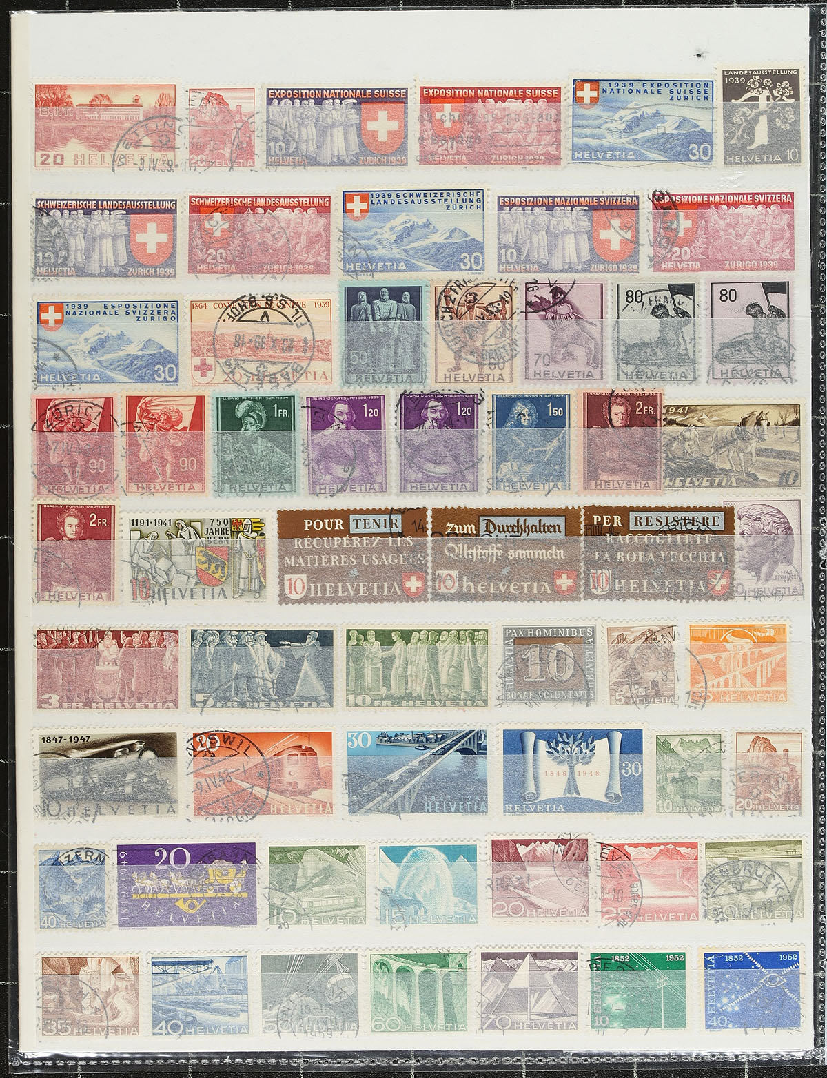 Collection of primarily used Switzerland, 1862-1970, containing roughly 700 stamps, generally well organized on album or in stock pages. The collection contains a good range of values including back of the book issues noting Scott #s 46-47, 54, 56, 59 (c.v. $77.50), 181-185, 206 ($93 total), J1-J9 ($104 total), along with some singles, sets, and partial sets cataloguing $10 to $25 and up each. Duplication up to 2 for a few issues. A clean lot for Switzerland and worldwide collectors. Estimate =