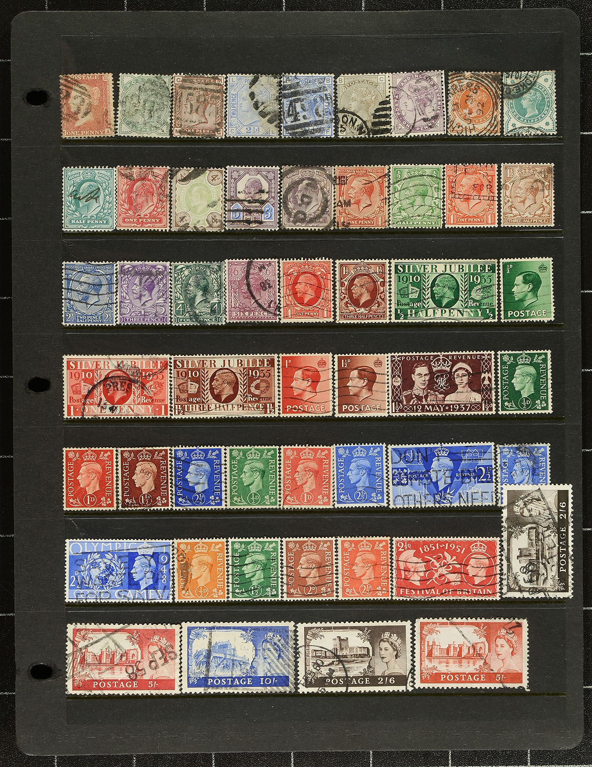 Accumulation of used Great Britain, Victorian era to 2000, containing a few thousand stamps on roughly 50 album or stock pages. We note several 100 Victorian issues, along with Edwards, KGV and VI, including a few Seahorses, back of the book issues and more. Many of the stamps have socked on the nose town cancels, noting a variety of different postmark types. A potentially high cataloguing lot, ideal for all collectors. A few faults to be expected, overall fine to very fine. Estimate =