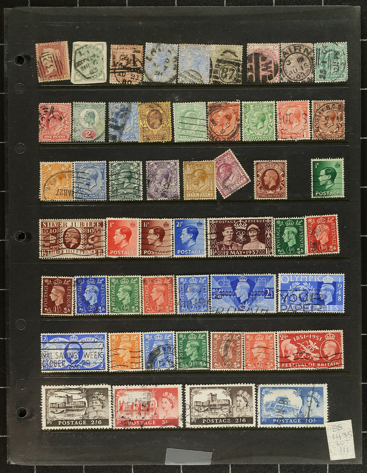 Accumulation of used Great Britain, Victorian era to 2000, containing a few thousand stamps on roughly 50 album or stock pages. We note several 100 Victorian issues, along with Edwards, KGV and VI, including a few Seahorses, back of the book issues and more. Many of the stamps have socked on the nose town cancels, noting a variety of different postmark types. A potentially high cataloguing lot, ideal for all collectors. A few faults to be expected, overall fine to very fine. Estimate =