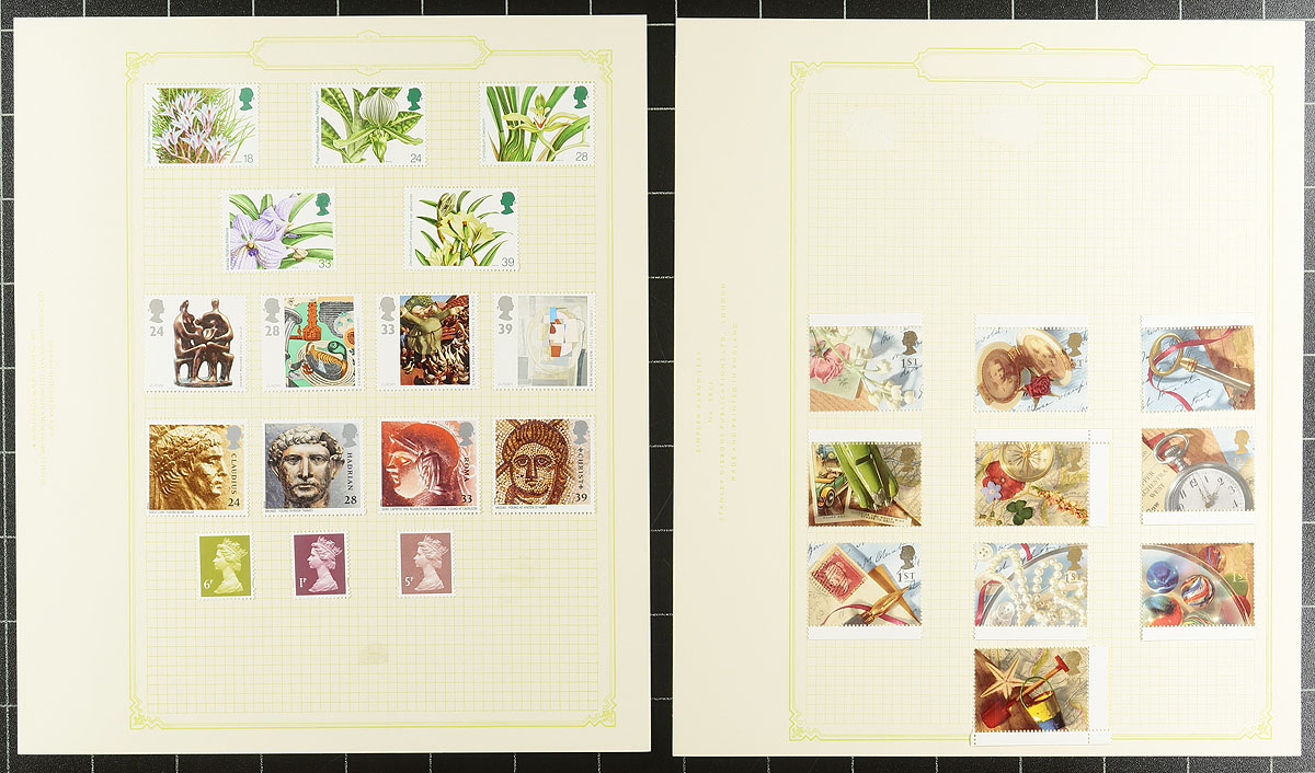 Collection / Accumulation of primarily never hinged Great Britian, 1911-2014, containing many hundreds of stamps in roughly 20 album or stock pages. The majority of the lot consists of sets from the 1980's onwards, with a few earlier singles and sets cataloguing in the $5 to $10 range. Owner's 2004 Scott catalogue value for the collection totals $1,052.00. We estimate face value to be roughly £250.00, making this a nice lot for collectors and postage users alike. Estimate =
