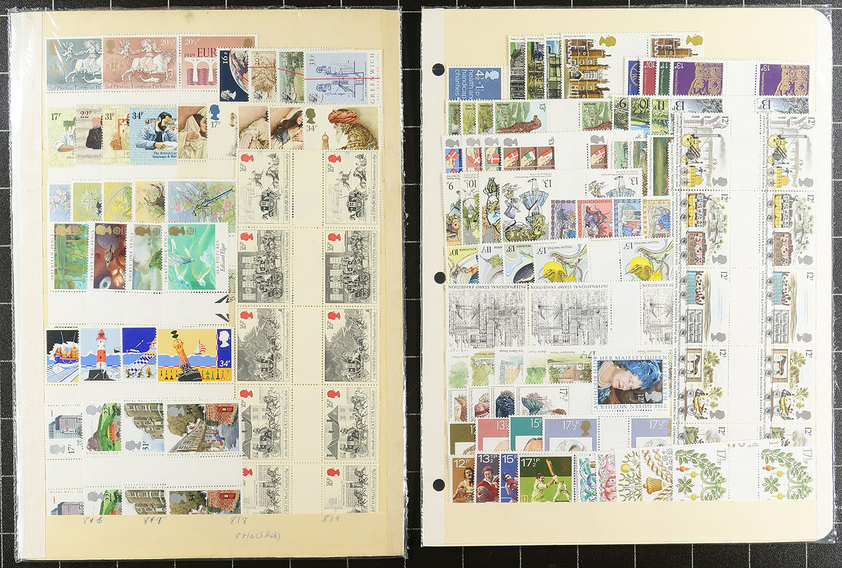 Collection / Accumulation of primarily never hinged Great Britian, 1911-2014, containing many hundreds of stamps in roughly 20 album or stock pages. The majority of the lot consists of sets from the 1980's onwards, with a few earlier singles and sets cataloguing in the $5 to $10 range. Owner's 2004 Scott catalogue value for the collection totals $1,052.00. We estimate face value to be roughly £250.00, making this a nice lot for collectors and postage users alike. Estimate =
