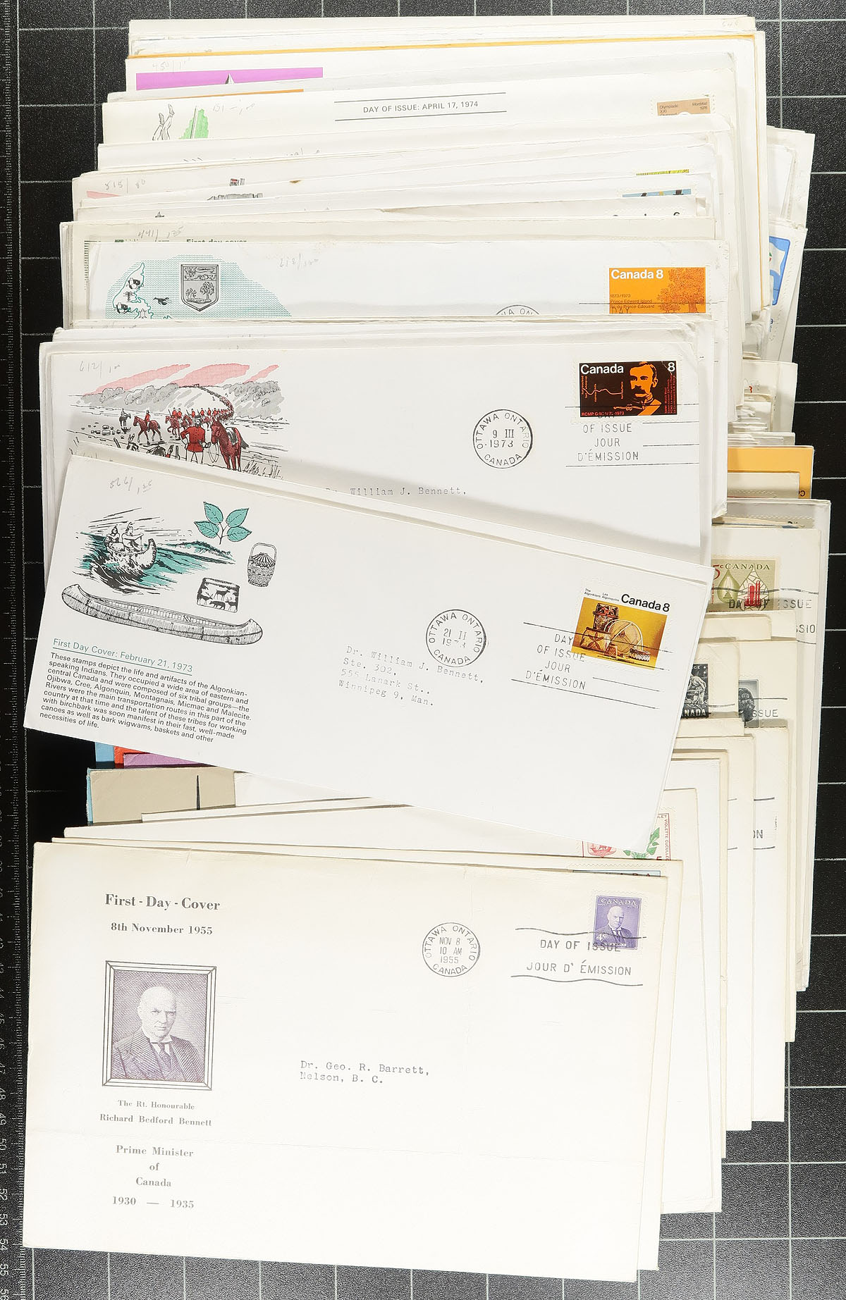 First Day Covers. Group of roughly 140 Schering first day covers, 1955-1974, noting various sized envelopes and duplication up to 3 for some issues. A nice lot for the first day cover collector as we do not usually come across these in this quantity. A few faults with a few of the covers, as is the nature with larger sized envelopes, overall fine to very fine. Estimate =