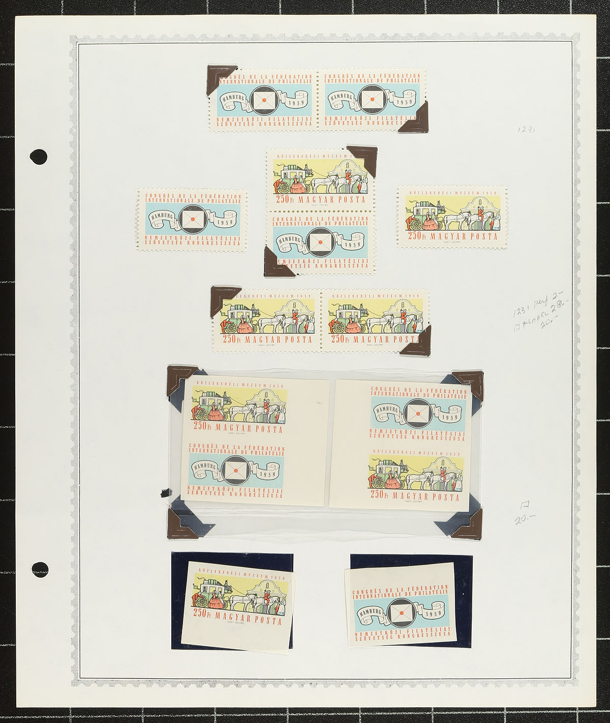 Extensive collection of primarily mint Hungary, 1911-1983, containing over 1,000 stamps, on about 100 Minkus album pages. Many of the stamps are hinged onto pages, along with some in hingeless mounts and a few secured by photo corners. The bulk of the collection consists of material from the late 1950's to about 1980, noting most issues have a perforated and an imperforate stamp, set, or souvenir sheet, including semi-postals and airmails. Just a few of the better items include Scott #s 1231 (mh, $120), C324 (mh, $70), along with many imperforate sets and souvenir sheets in the $10 to $25 range and up. A potentially high cataloguing collection, ideal for collectors and dealers alike. Online photos show an overview and a few sample pages. Estimate =