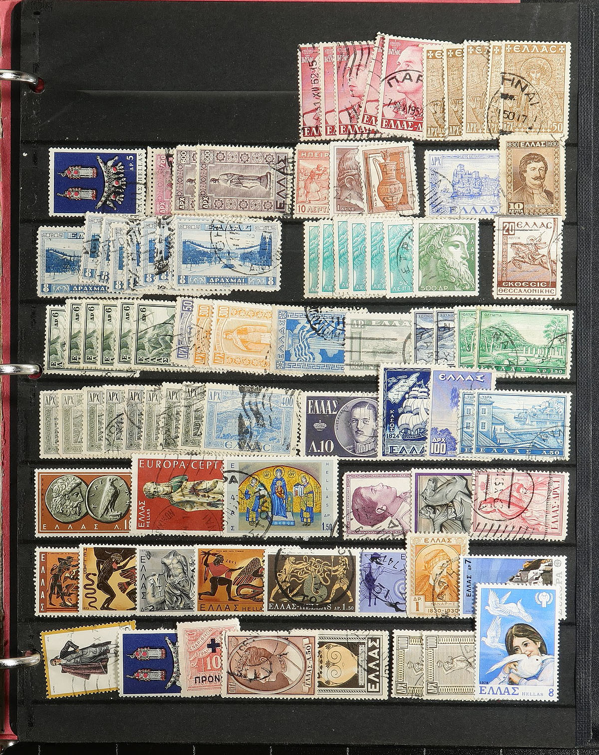 Collection / accumulation of used Greece, 1896-2013, containing roughly 1,300 stamps in 20 stock pages. The lot generally ranges from Scott #3/2593 with the strength of the lot in the modern used, generally running from the 1990s up to 2013 (mostly commemorative stamps), with postmark interest being bridge and cds town cancel types. Owner's 2014 Scott catalogue value totals US$1,444.00. A nice lot for the Greece or worldwide collector trying to fill spaces for modern used. Duplication up to 5 in some cases. Estimate =