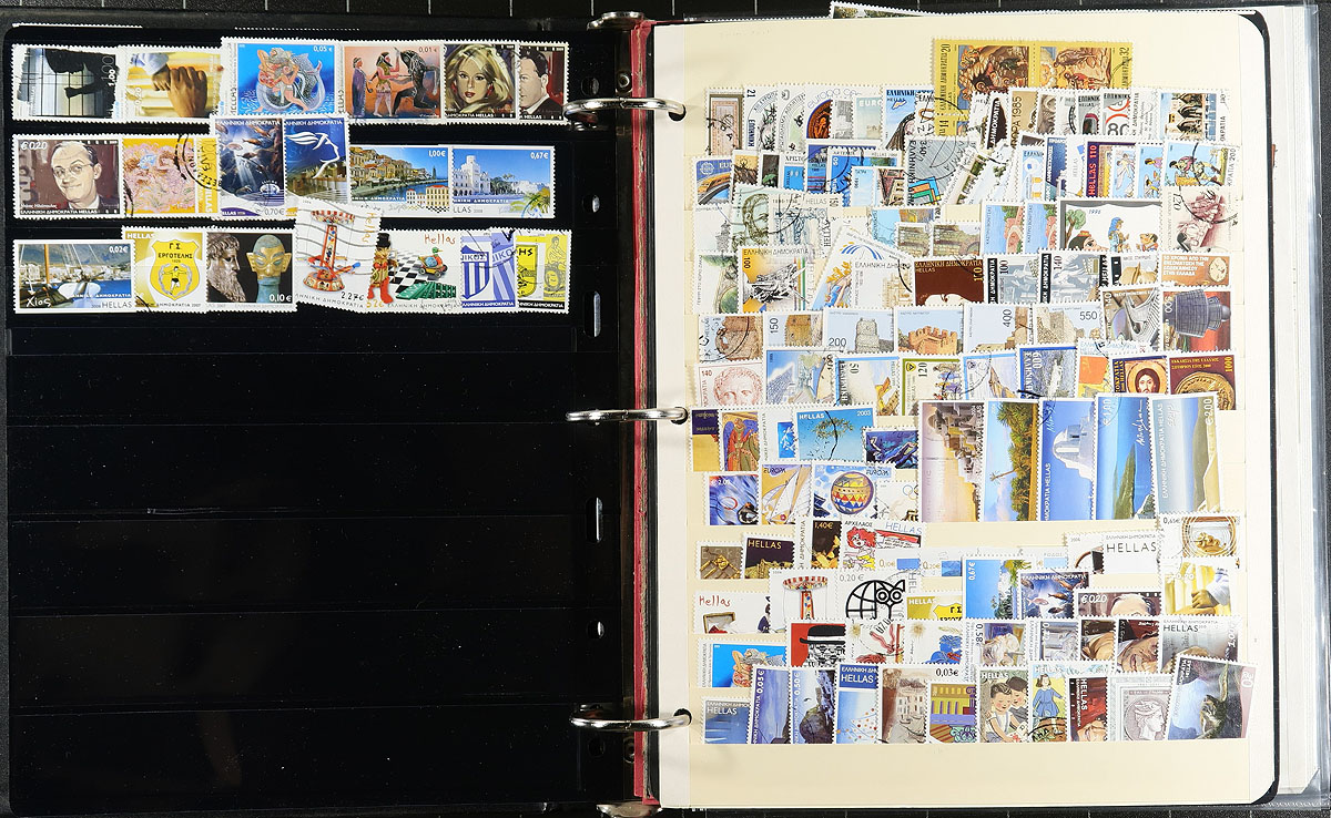 Collection / accumulation of used Greece, 1896-2013, containing roughly 1,300 stamps in 20 stock pages. The lot generally ranges from Scott #3/2593 with the strength of the lot in the modern used, generally running from the 1990s up to 2013 (mostly commemorative stamps), with postmark interest being bridge and cds town cancel types. Owner's 2014 Scott catalogue value totals US$1,444.00. A nice lot for the Greece or worldwide collector trying to fill spaces for modern used. Duplication up to 5 in some cases. Estimate =