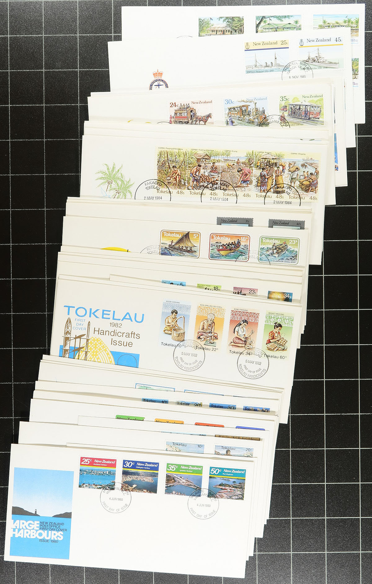 Lovely collection of roughly 370 New Zealand first day covers, 1937-1993, noting singles, pairs, and several sets frankings, including many Health stamps. The lot also includes a few commemorative covers (noting a few balloon posts), with many of the covers sleeved and priced from $2 to $4 each. A few faults with a few of the coves, and duplication up to 3 for a few issues. Estimate =