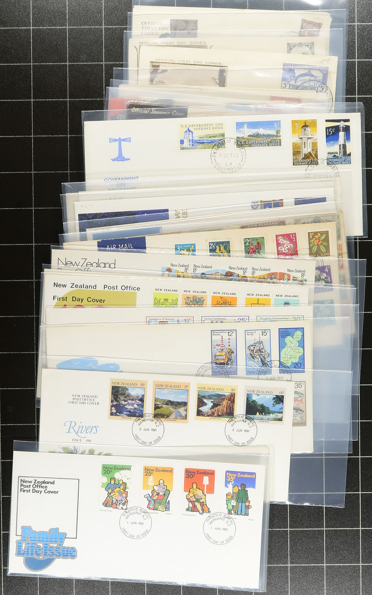 Lovely collection of roughly 370 New Zealand first day covers, 1937-1993, noting singles, pairs, and several sets frankings, including many Health stamps. The lot also includes a few commemorative covers (noting a few balloon posts), with many of the covers sleeved and priced from $2 to $4 each. A few faults with a few of the coves, and duplication up to 3 for a few issues. Estimate =