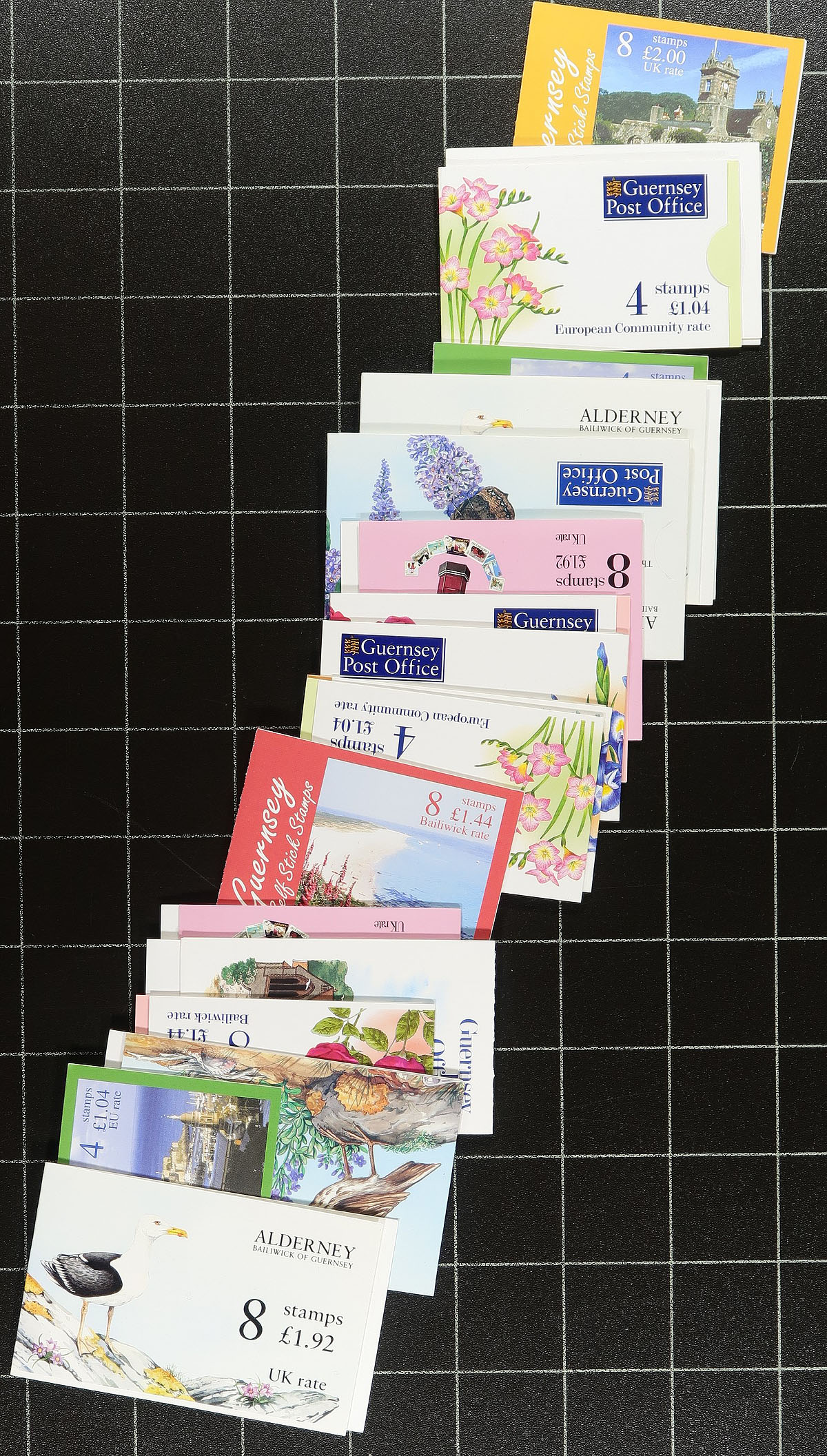Nice group of roughly 120 Channel Island booklets, 1980-2000, with representation from all Islands and most are well organized in glassines. The vast majority are mint, with a handful of the panes receiving first day cancels, and includes a few prestige booklets. A nice lot for booklet, and topical / thematic collectors as we note many suitable subjects including butterflies, birds, and more. Mild duplication for some issues, and well worth our low estimate as these will catalogue much higher. Estimate =