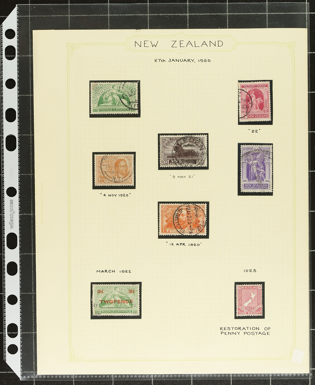 Collection / Accumulation of used New Zealand, 1880's-2012, containing roughly 2,500 stamps on several album or stock pages. The lot contains a wide variety of material including Victorian singles, with strength from the 1900's to the 1960's (including better sets), used blocks, back of the book material (including fiscals, officials, semi-postals, and more), noting some singles and sets cataloging $10 to $20 and up, including Scott #165-170 (c.v. $101 total). Owner's 2017 Scott catalogue value for the lot totals US$2,798.00, leaving better finds to the dedicated collector. A few faults expected, overall fine to very fine. Estimate =