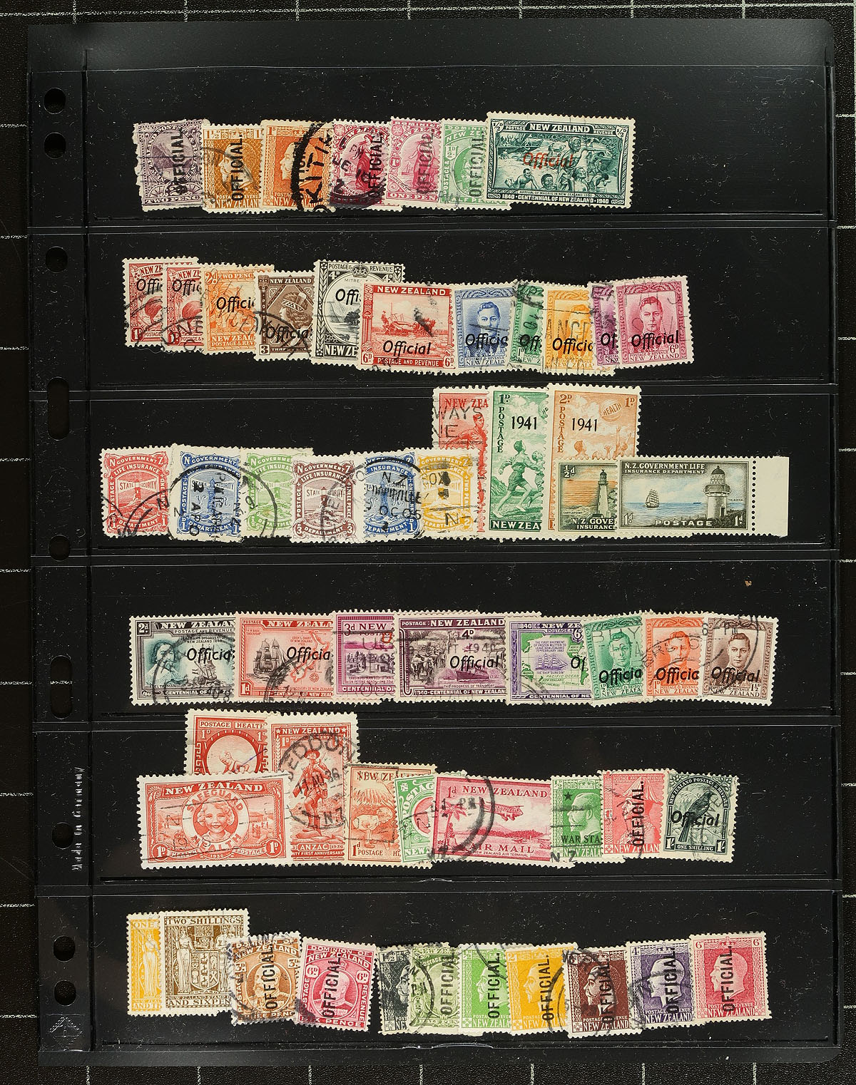 Collection / Accumulation of used New Zealand, 1880's-2012, containing roughly 2,500 stamps on several album or stock pages. The lot contains a wide variety of material including Victorian singles, with strength from the 1900's to the 1960's (including better sets), used blocks, back of the book material (including fiscals, officials, semi-postals, and more), noting some singles and sets cataloging $10 to $20 and up, including Scott #165-170 (c.v. $101 total). Owner's 2017 Scott catalogue value for the lot totals US$2,798.00, leaving better finds to the dedicated collector. A few faults expected, overall fine to very fine. Estimate =