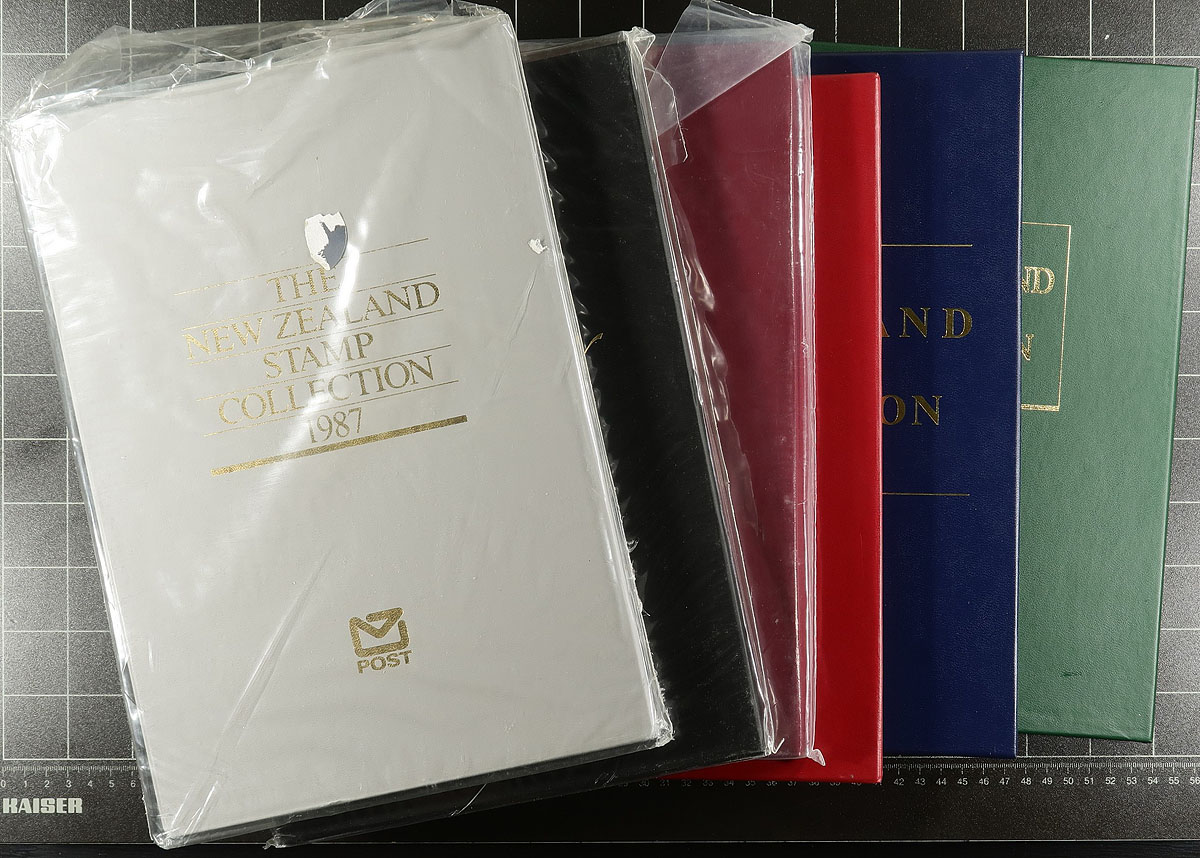 Group of 6 New Zealand annual collections, 1984-1989, a few still sealed, containing sets, souvenir sheets, and Health issues. Original retail prices would have been a couple hundred dollars. Clean and ideal for the New Zealand or thematic collector. Estimate =
