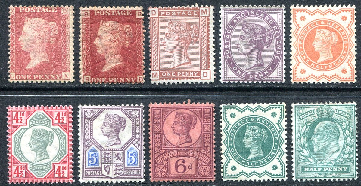Early mint assembly of 10 different 1857-1902 Queen Victoria / Edward VII issues, including #20 and #33 (plate 206). A range of hinging, generally hinge remnant as usually seen on these early issues. 2025 Scott US$286.25 =